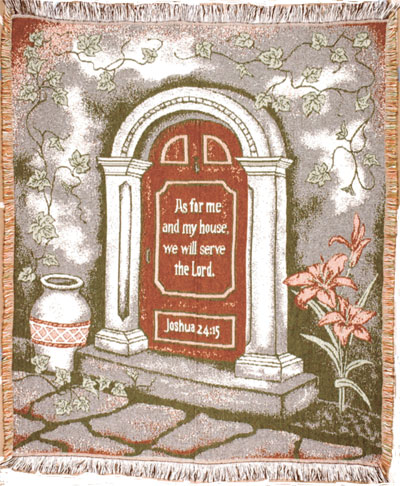 This 2.5 layer throw features the verse Joshua 24:15 “As for me and my house, we will serve the lord.” written out on a beautiful red door.
